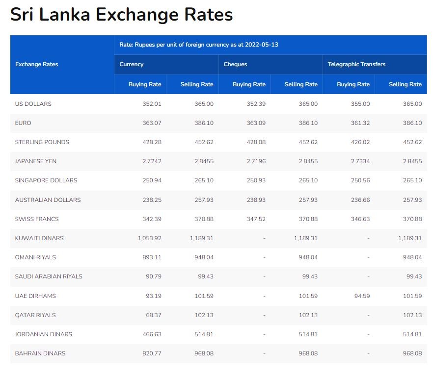 இன்றைய தினம் உரிமம் பெற்ற பல வணிக வங்களில் அமெரிக்க டொலர் ஒன்றை 365 ரூபாவுக்கு விற்பனை செய்கின்றன.