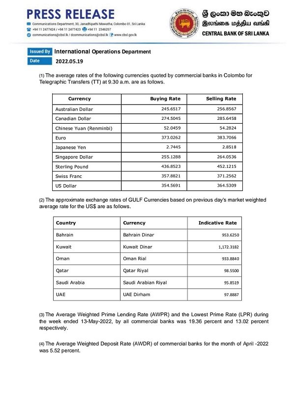 இலங்கை மத்திய வங்கியின் படி, அமெரிக்க டொலர் இன்று மூன்றாவது நாளாகவும் மாற்றமின்றி உள்ளது.