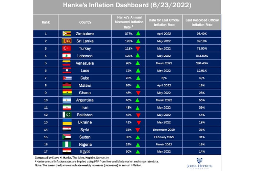 உலக பணவீக்க பட்டியலில் இலங்கை மூன்றாவது இடத்துக்கு!