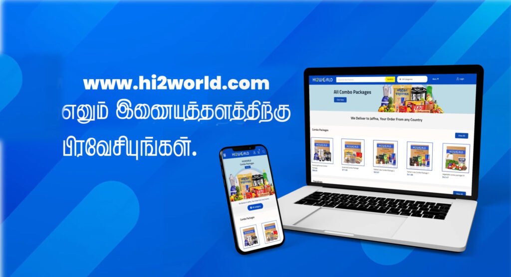 புலம்பெயர் நாட்டில் இருந்து இலங்கையிலுள்ள தாய், தந்தை, உறவுகளுக்கு அத்தியாவசிய பொருட்கள் கொடுக்க சிறந்த இணையத்தளம் Hi2world.com இலங்கையில் இருக்கும் பொருளாதார பிரச்சினை காரணமாக அங்கு உள்ள உங்கள் தாய் தந்தையர்கள் பொருட்கள் வாங்க முடியாத நிலையில்? இங்கிருந்து நீங்கள் ஆன்லைன் ஊடாக பொருட்களை ஓடர் பண்ணி கொடுக்க சிறந்த வழி புலம்பெயர் நாட்டில் இருந்து கொண்டே இணையத்தளம் ஊடாக பொருட்களை ஓடர் பண்ணினால் அங்கே உங்கள் வீட்டு வாசலில் கொண்டு போய் கொடுக்கிறார்கள்