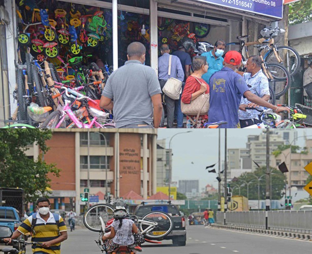 கொழும்பில் சைக்கிள் வாங்க கடை வாசலில் காத்திருக்கும் மக்கள்
