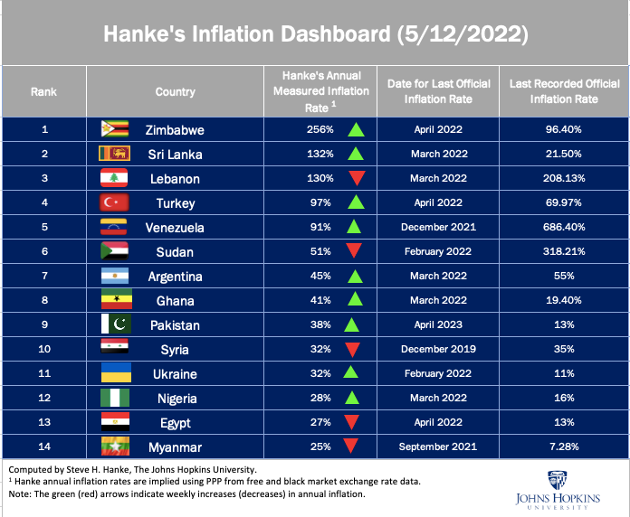 உலகின் இரண்டாவது அதிக பணவீக்கம் கொண்ட நாடாக இலங்கை மாறியுள்ளதாக, ஜோன்ஸ் ஹொப்கின்ஸ் பல்கலைக்கழகத்தின் பேராசிரியர் ஸ்டீபன் ஹெங்க் வழங்கிய இந்த வார பணவீக்க அட்டவணையில் சுட்டிக்காட்டப்பட்டுள்ளது. இந்த பட்டியலில் சிம்பாப்வே மட்டுமே இலங்கைக்கு மேலே உள்ளது. லெபனான், சூடான், ஆப்கானிஸ்தான், துருக்கி ஆகிய நாடுகளை தாண்டி இலங்கை பணவீக்கம் சாதனை அளவில் உயர்ந்துள்ளது என்பதை பேராசிரியரின் அட்டவணை காட்டுகிறது. இந்த வார பணவீக்க அட்டவணையில், இலங்கை மீண்டும் ஒருமுறை தீவிரமான ஆய்வுக்கு உள்ளாகியுள்ளது, பணவீக்கம் 132 […]