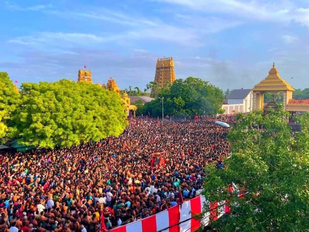 யாழ்ப்பாணம் – நல்லூர் கந்தசுவாமி ஆலயத்தின் தேர்த்திருவிழா இன்று காலை இடம்பெற்றது. இன்று காலை 6.15 அளவில் இடம்பெற்ற வசந்த மண்டபப் பூஜையைத் தொடர்ந்து, சண்முகப்பெருமான் தேரில் எழுந்தருளி அடியார்களுக்கு அருள் பாலித்தார். தேர்த்திருவிழாவில் பல்லாயிரக் கணக்கான பக்தர்கள் கலந்து கொண்டனர். அதிகாலை முதல் ஆலயத்தின் நாலா புறத்திலிருந்தும் பக்தர்கள் வருகை தந்தனர். அடியார்கள் அங்கப் பிரதட்சணம் செய்தும் அடி அழித்தும் நேர்த்திக் கடன்களை நிறைவேற்றியதுடன், நூற்றுக் கணக்கான காவடிகளும் வருகை தந்திருந்தன. நல்லூர் கந்தசுவாமி ஆலய […]
