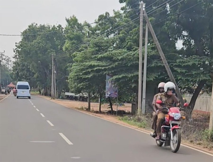 யாழ் – அச்சுவேலியில் தொலைபேசியில் உரையாடியவாறு மோட்டார் சைக்கிள் செலுத்தும் பொலிஸார்!