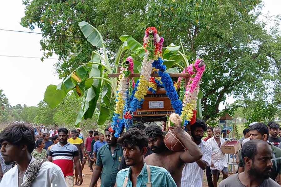 இனந்தெரியாத நபர்களின் வாள்வெட்டுக்கு இலக்காகி உயிரிழந்த பூநகரி செம்மன் குன்று பகுதியைச்சேர்ந்த கந்தசாமி பிரணவனின் இறுதிக்கிரியை இன்று நடைபெற்றது.