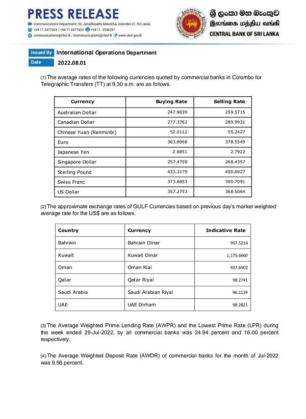 கடந்த வெள்ளிக்கிழமையுடன் ஒப்பிடுகையில் பஹ்ரைன் மற்றும் குவைத் தினார்களின் விற்பனை விலையும் அதிகரித்துள்ளது.